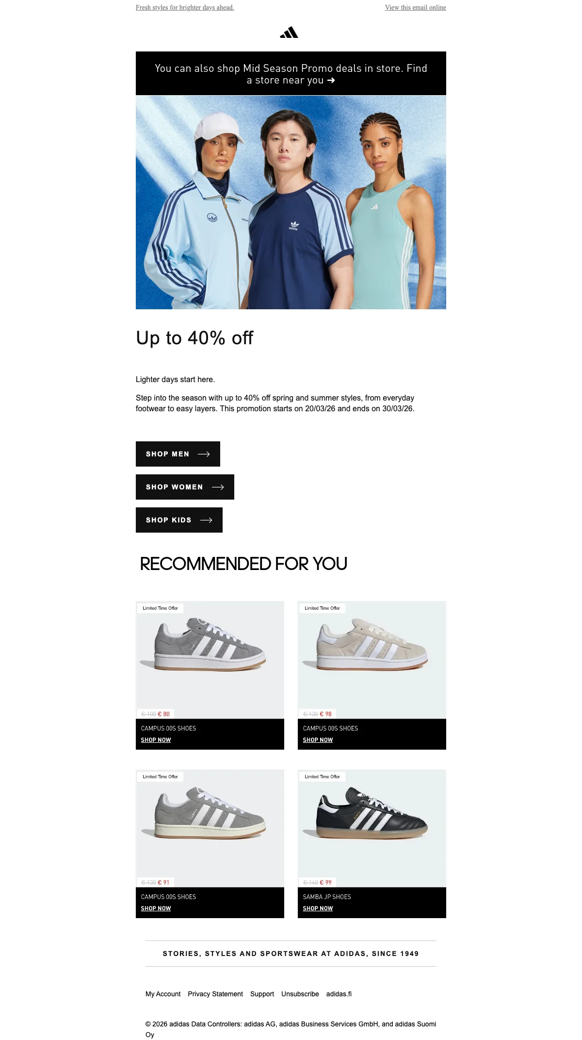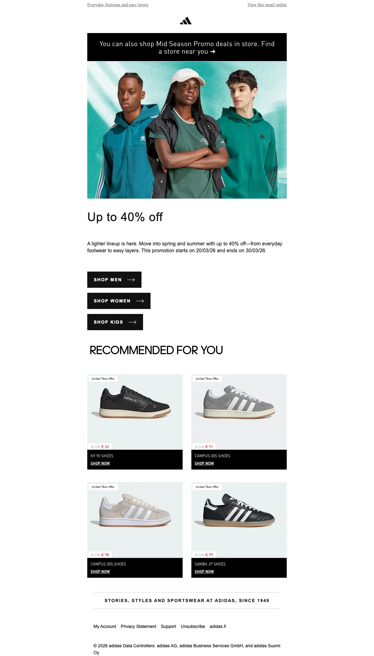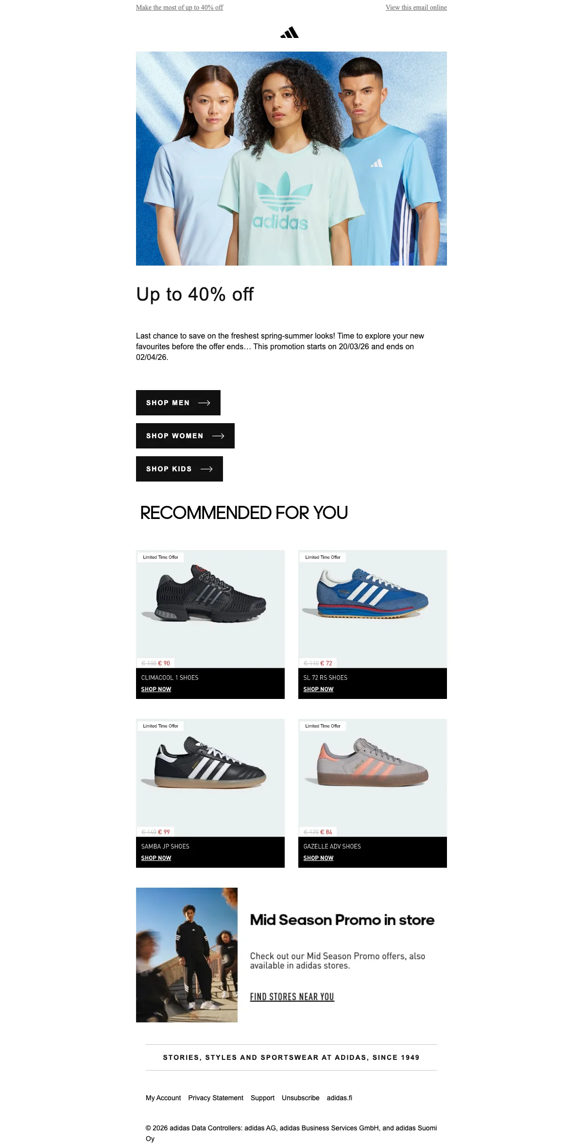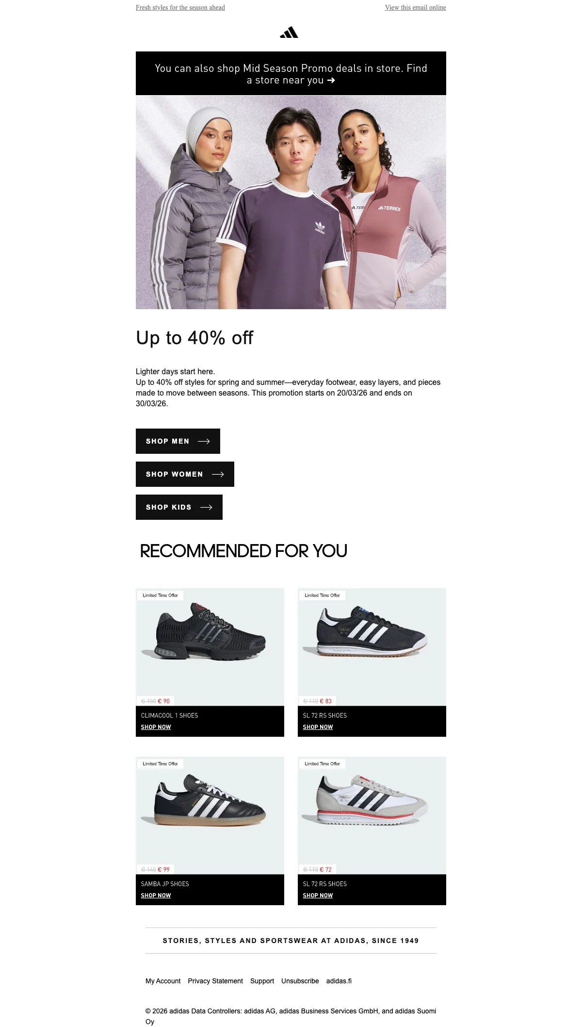 Adidas talvimyynti 40% alennus - viimeiset päivät