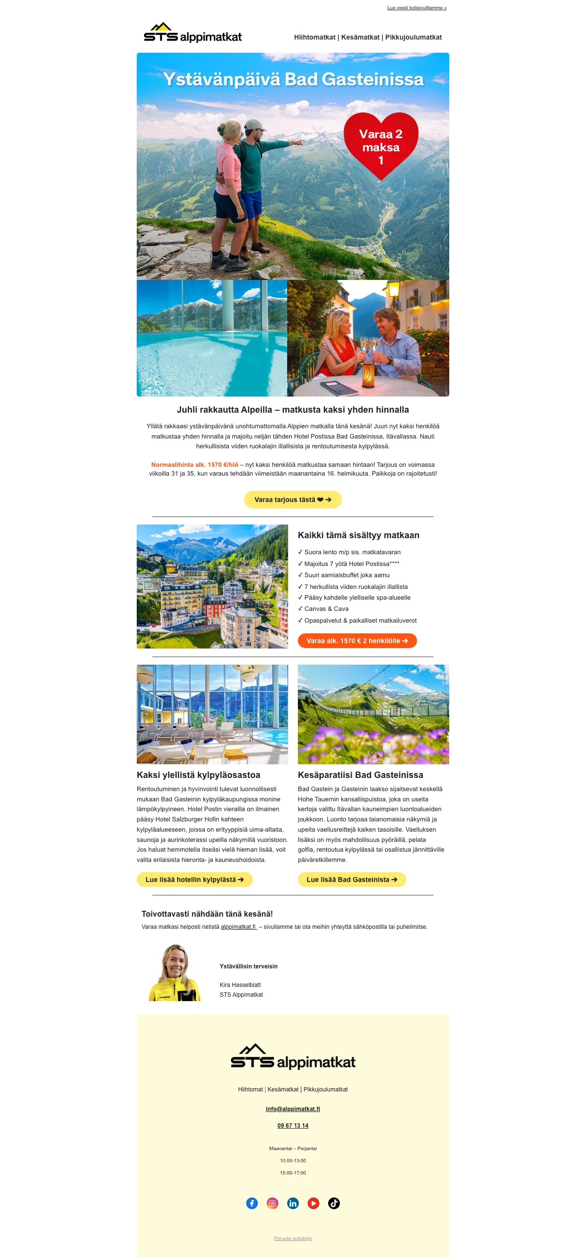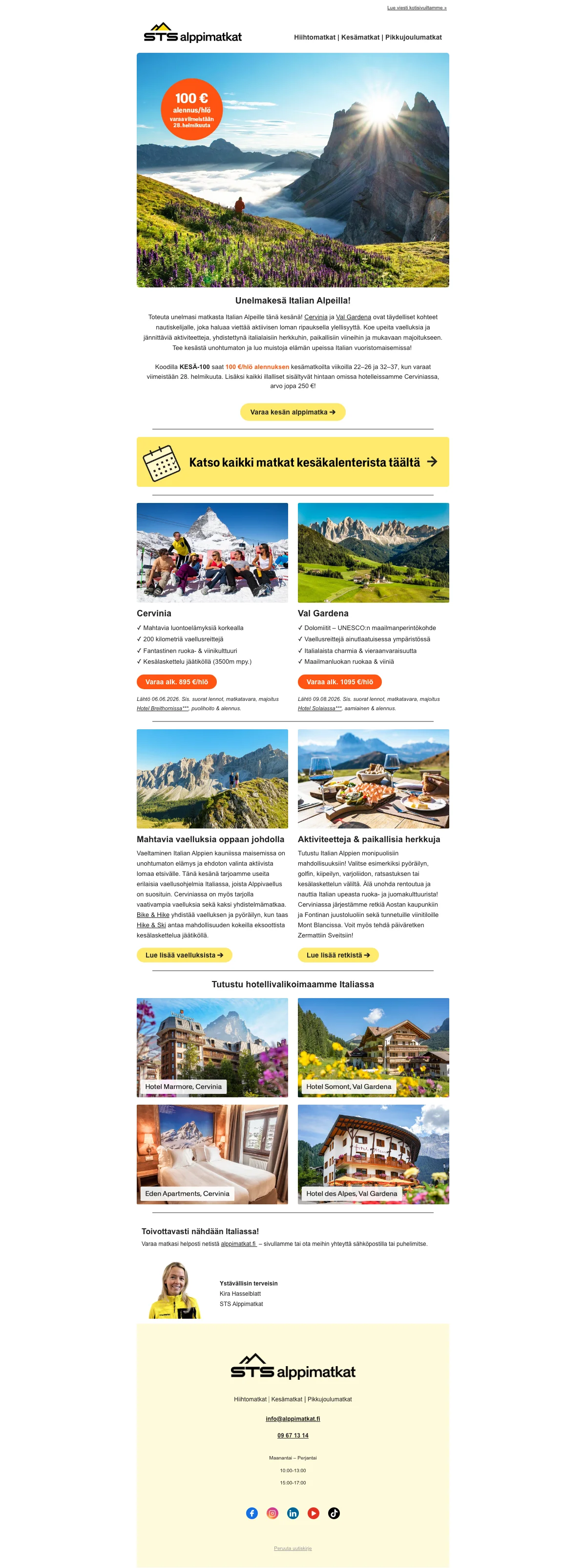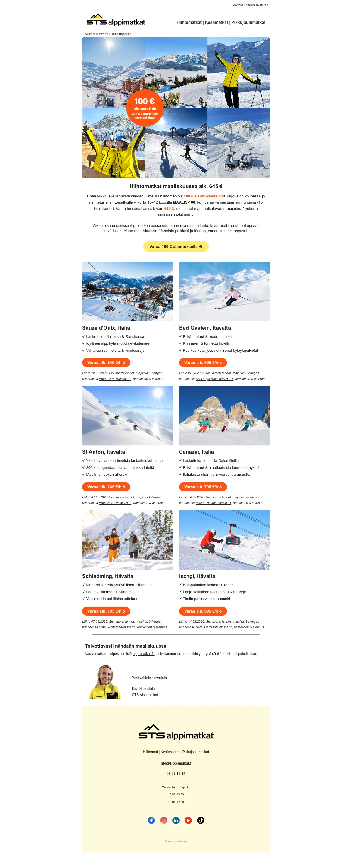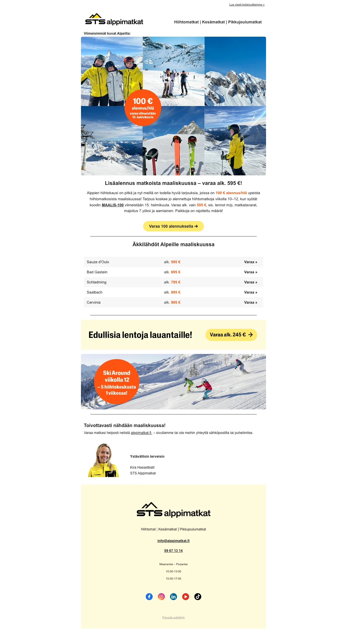 We check all the newsletters from Alppimatkat for you to find the best deals. Have a look at their latest newsletters.