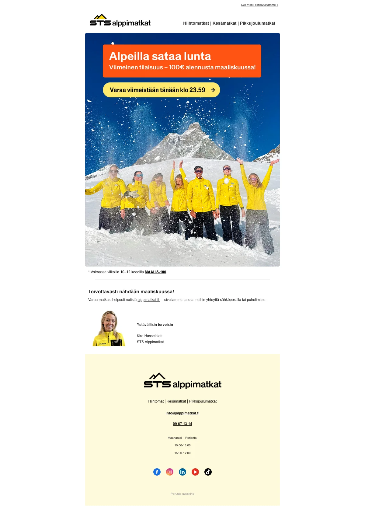⏳ Lähtölaskenta on alkanut – 100 € alennusta matkoista maaliskuussa! 🤩❄️💛