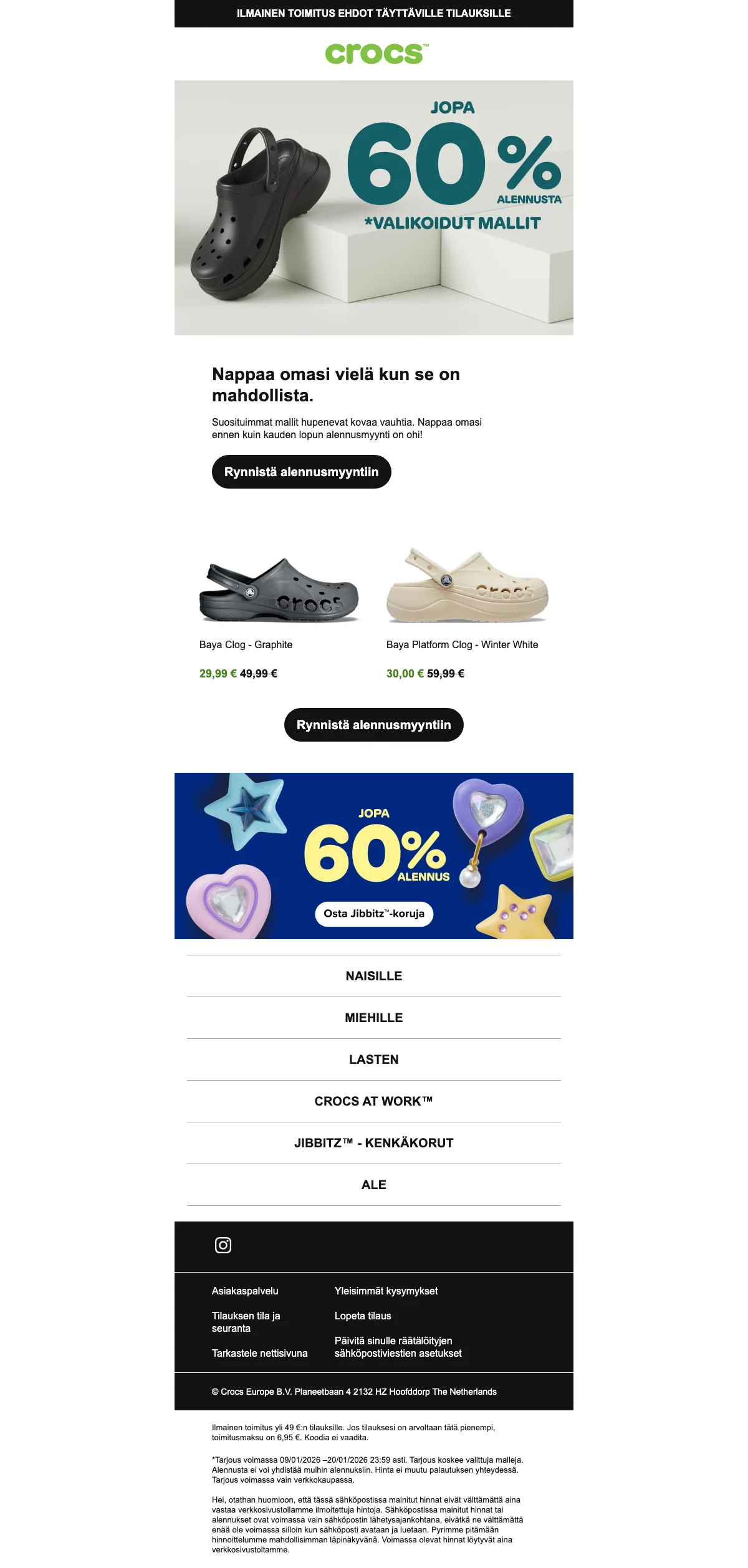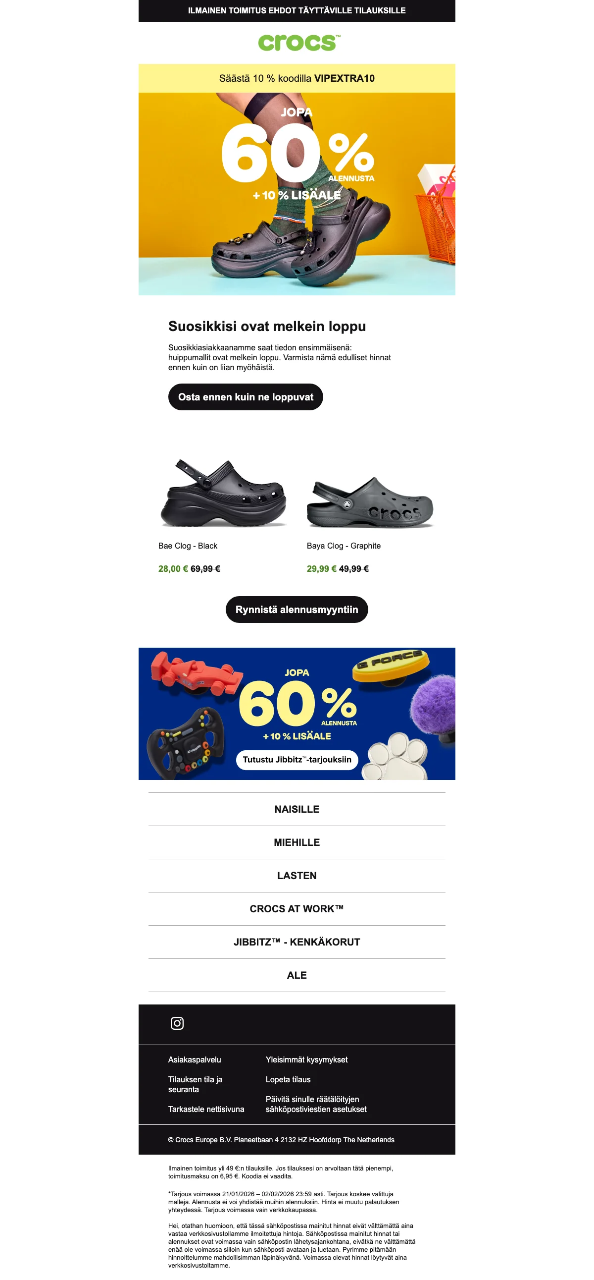 Crocs kahdet 60 € - osta 2 paria Crocs-kenkiä vain 60 eurolla