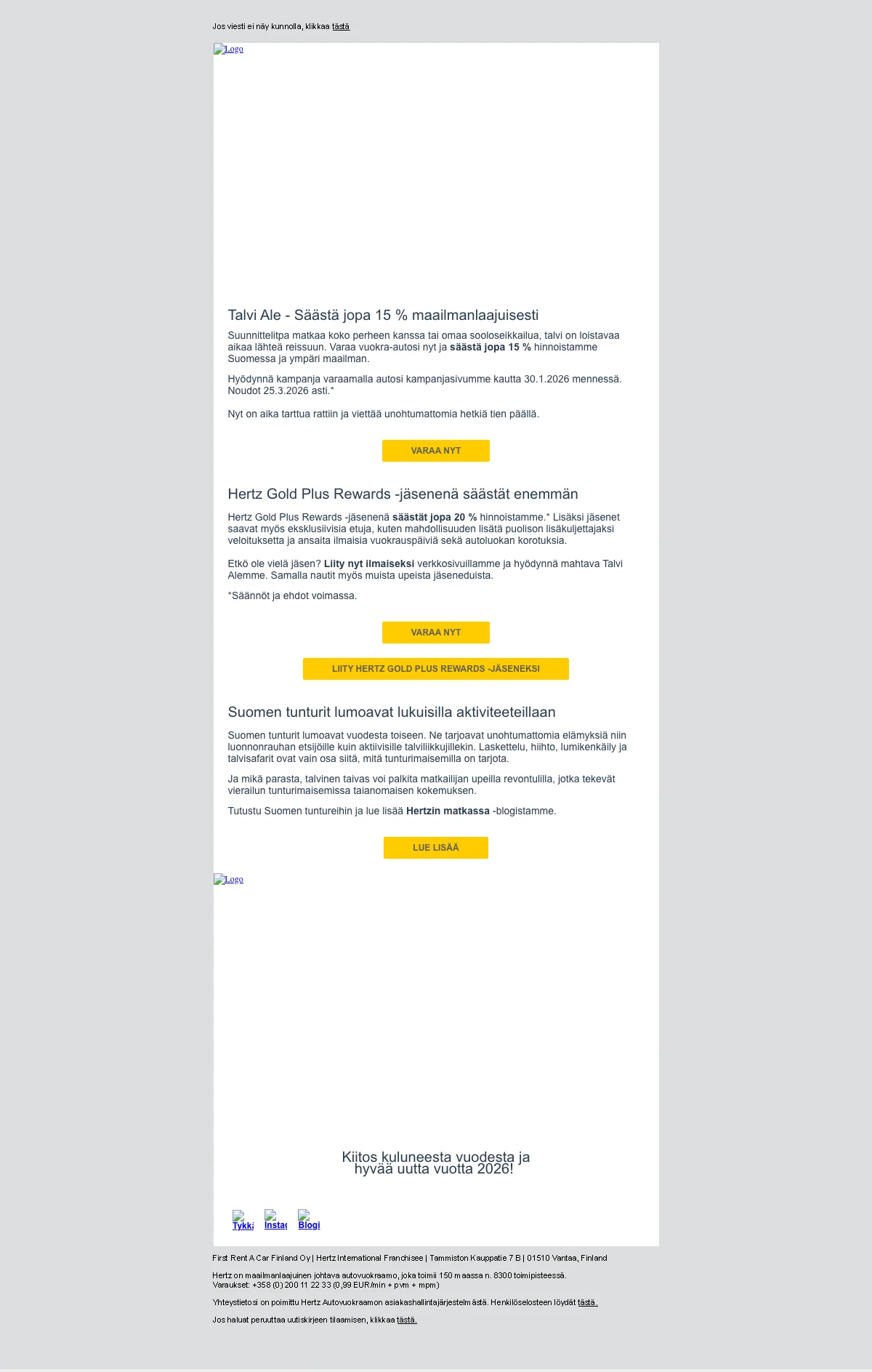 Alennuskoodit Hertz Suomi - helmikuu 2026
