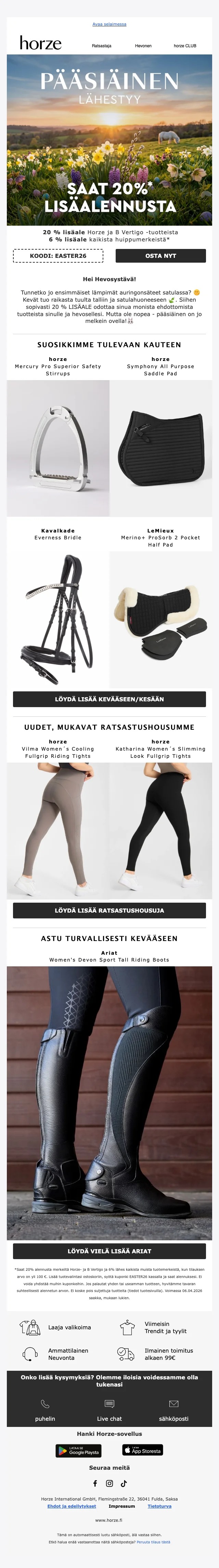 Ratsastustarvikkeet netistä edullisemmin käyttämällä Horze alennuskoodi