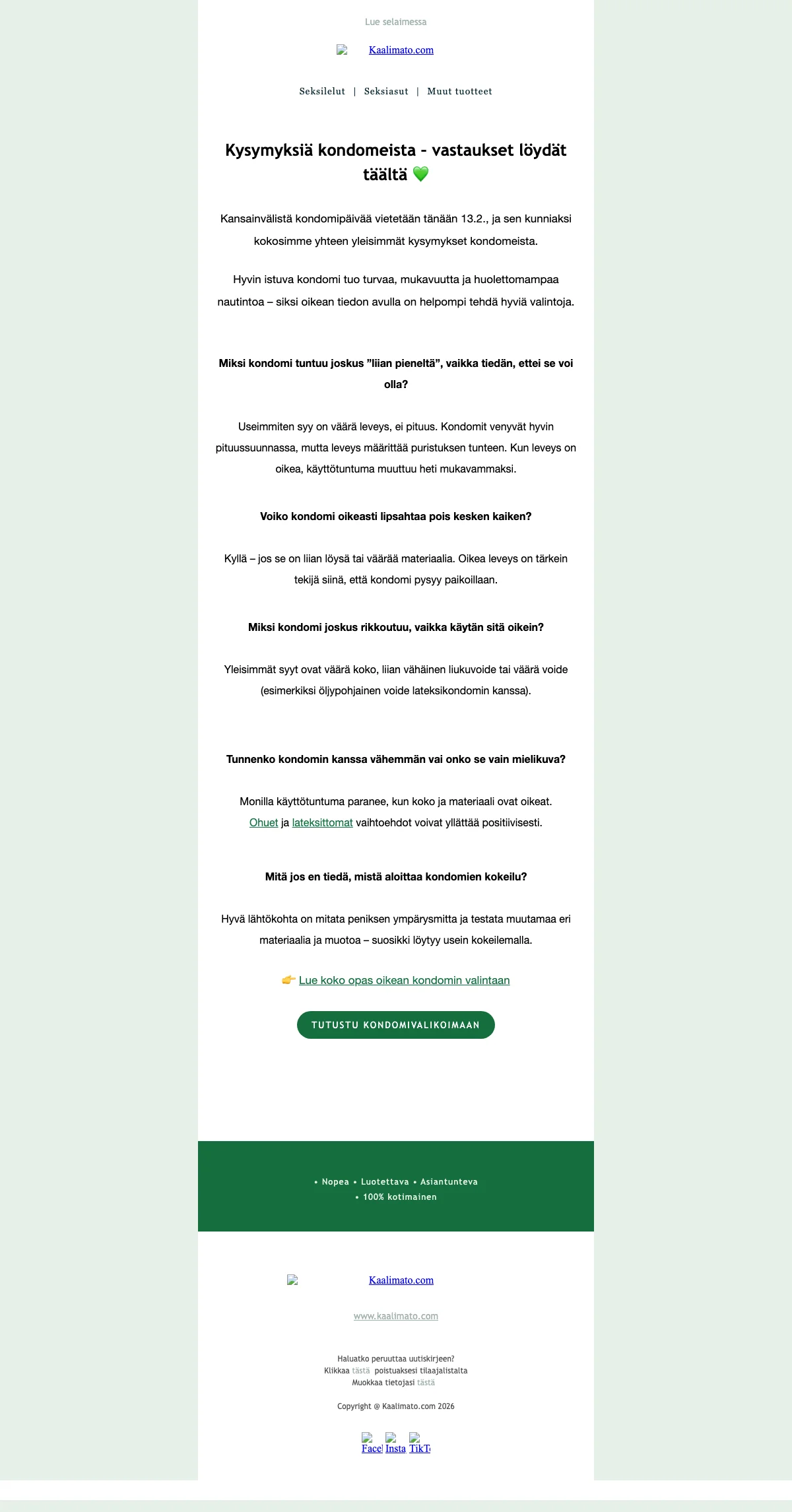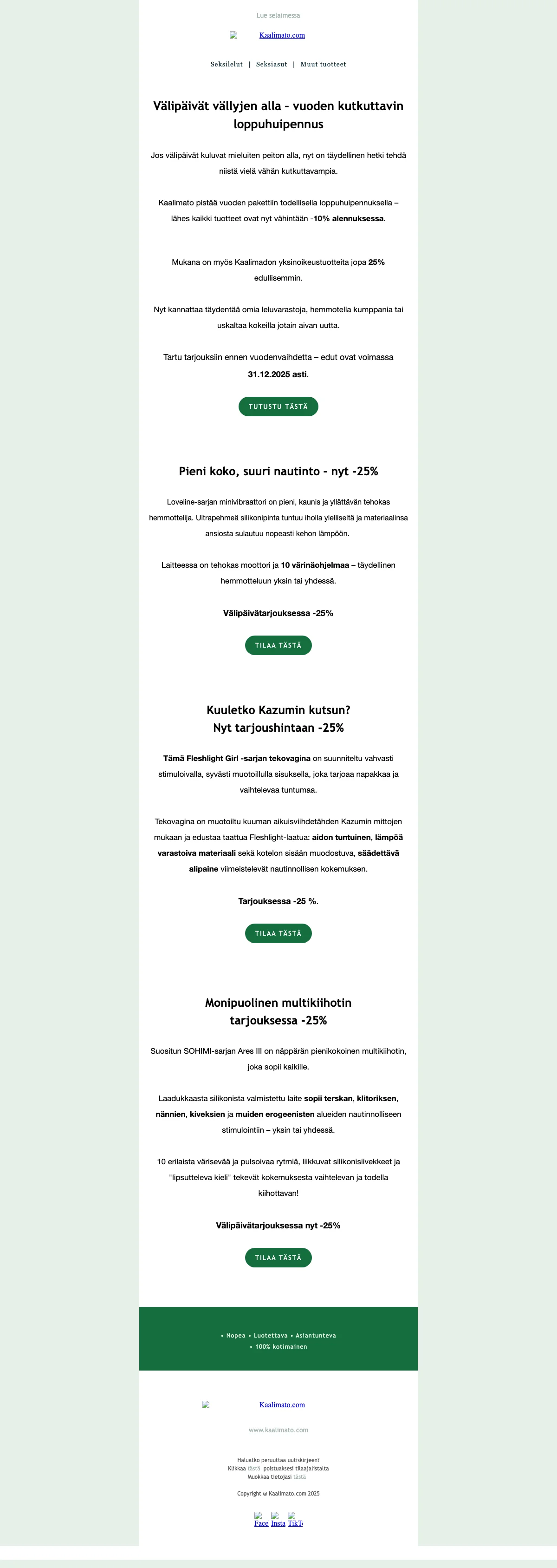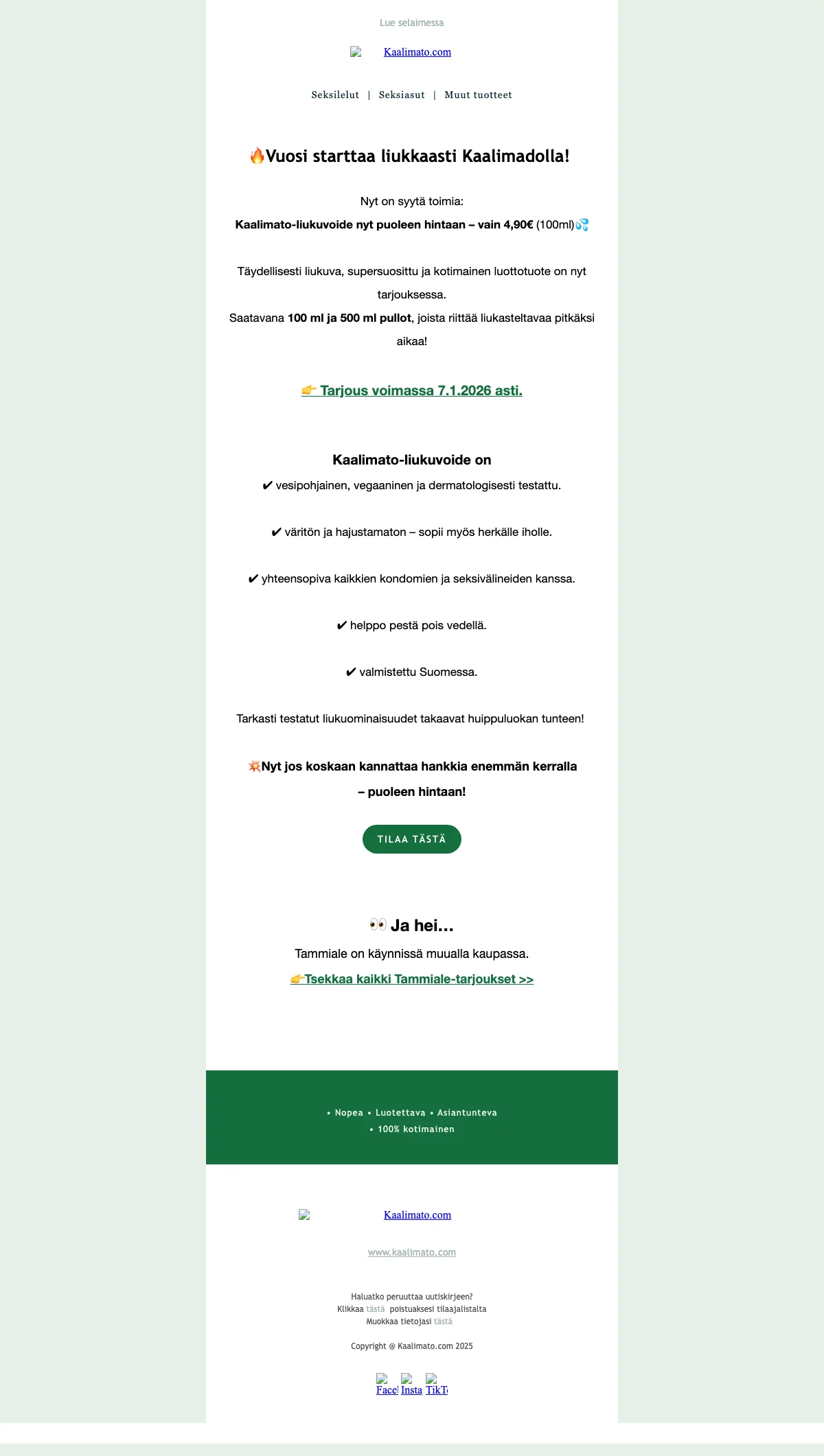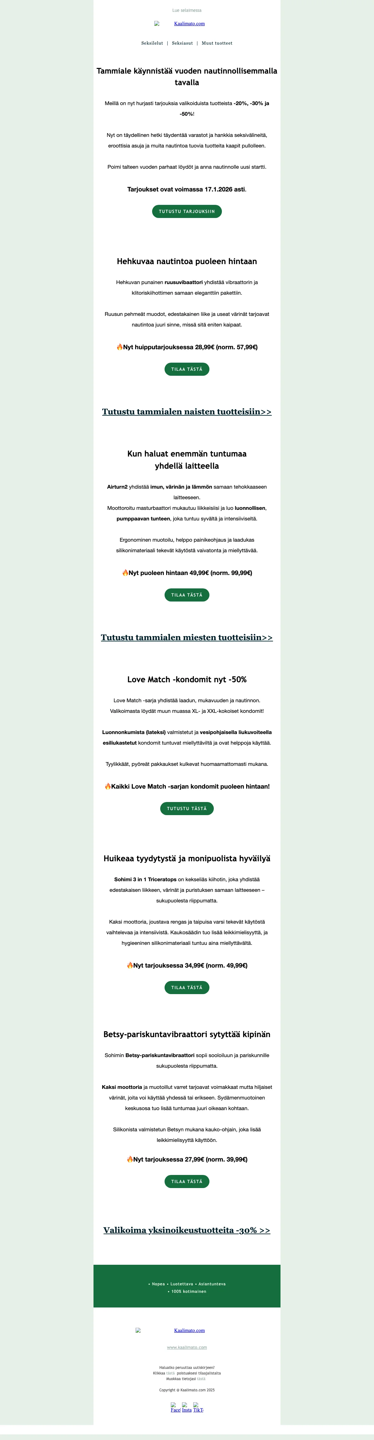 We check all the newsletters from Kaalimato for you to find the best deals. Have a look at their latest newsletters.