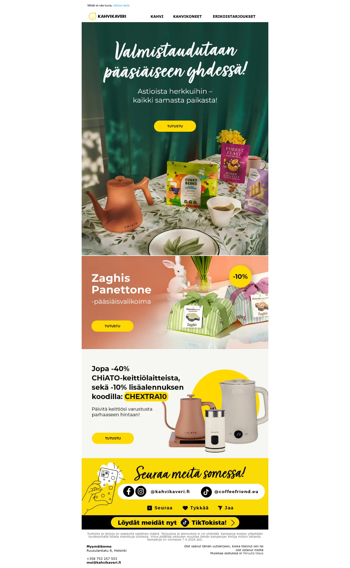 | CFBASKET | Kahvikaveri alennuskoodi: 15€ alennus 500€:n ostoksista |