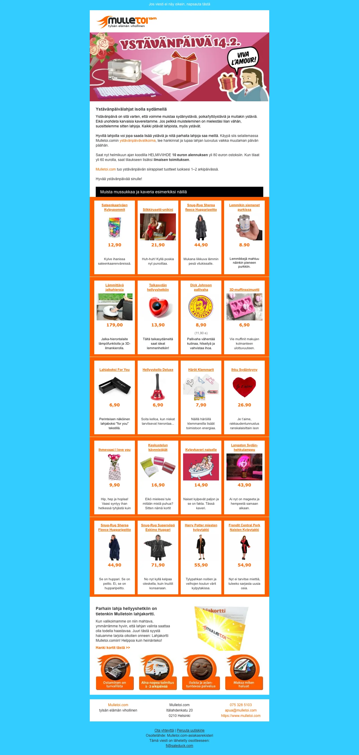 | HELMIVIIHDE | Mulletoi ystävänpäivätarjous 10€ alennus yli 100€ ostoksista |