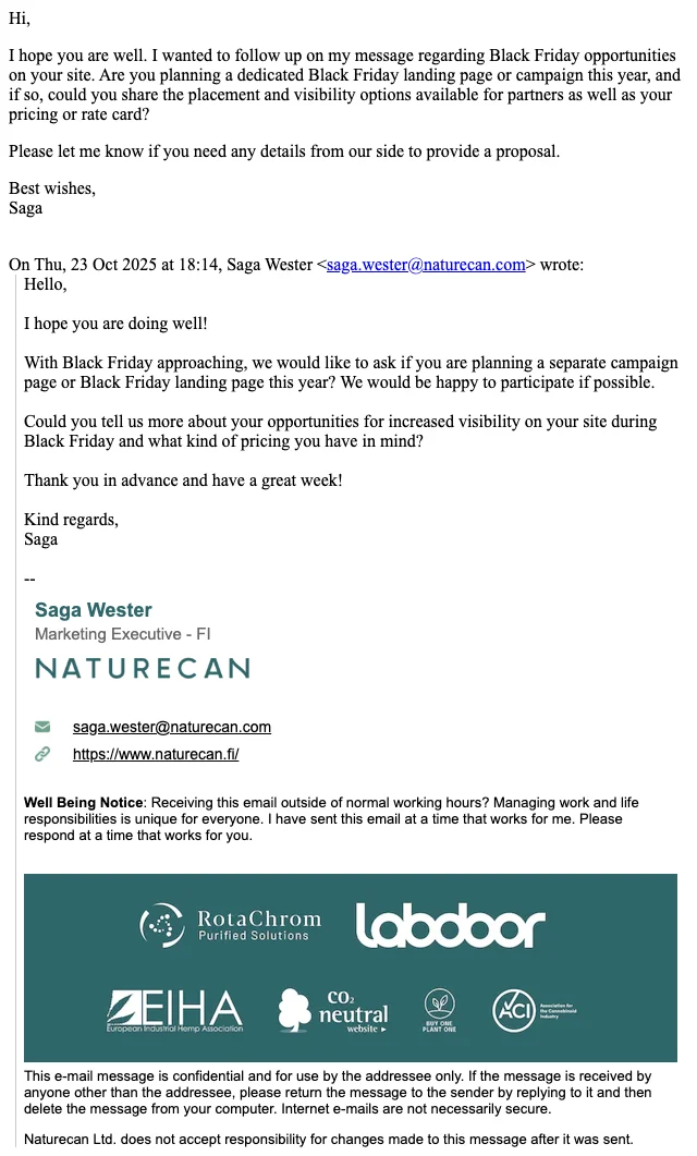 Saat 15% alennusta kaikista tuotteista Naturecanin verkkokaupassa. Tarjous koskee koko valikoimaa ja tuo säästöä terveys- ja hyvinvointituotteisiin. Voimassa vain verkkokaupan tilauksille.