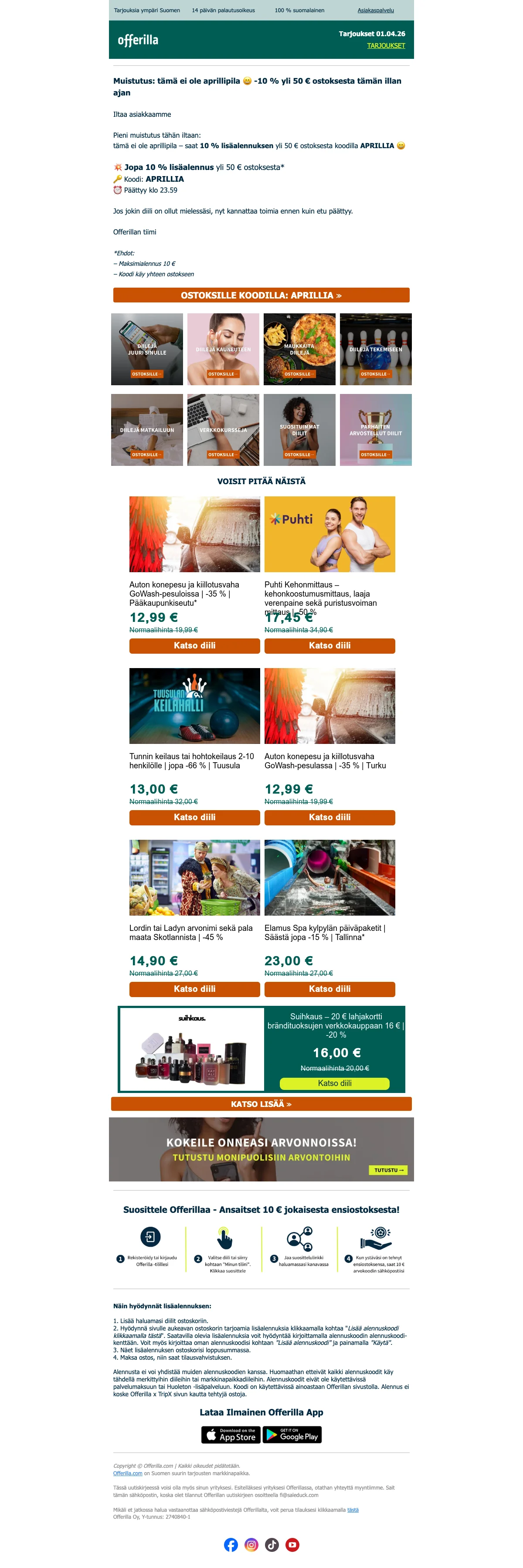 Offerilla alekoodi Suomi - huhtikuu 2026