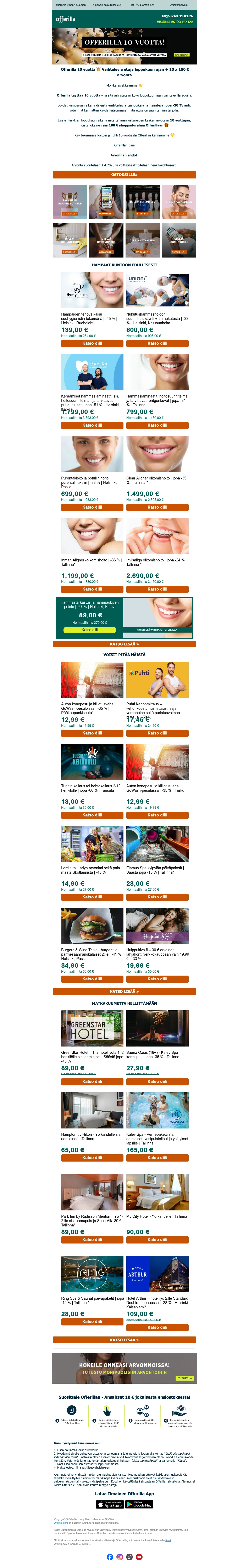 Offerilla synttäritarjous: jopa 30% alennus ja 10×100€ arvonta