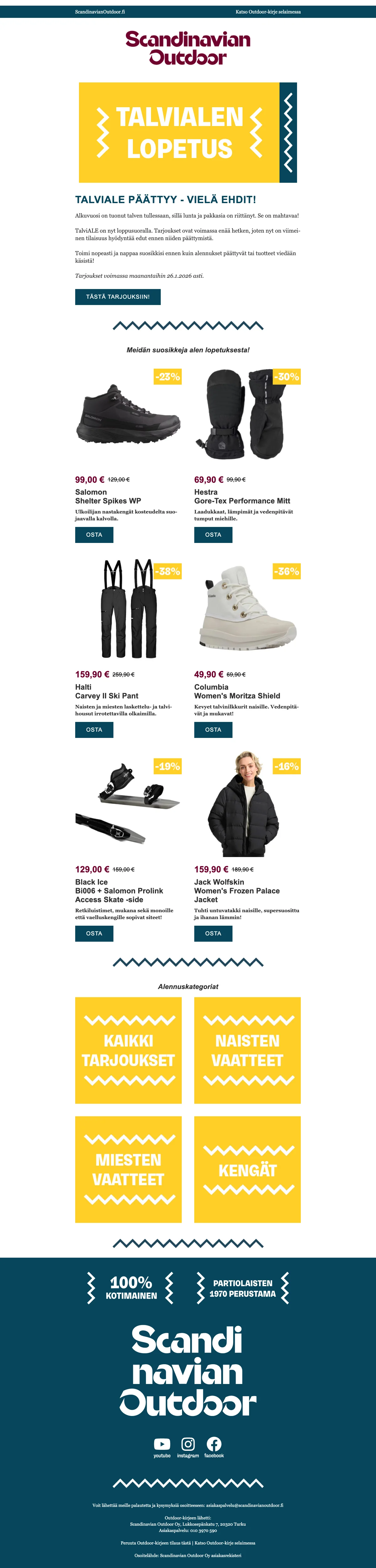 Scandinavian Outdoor alennus Suomi - helmikuu 2026