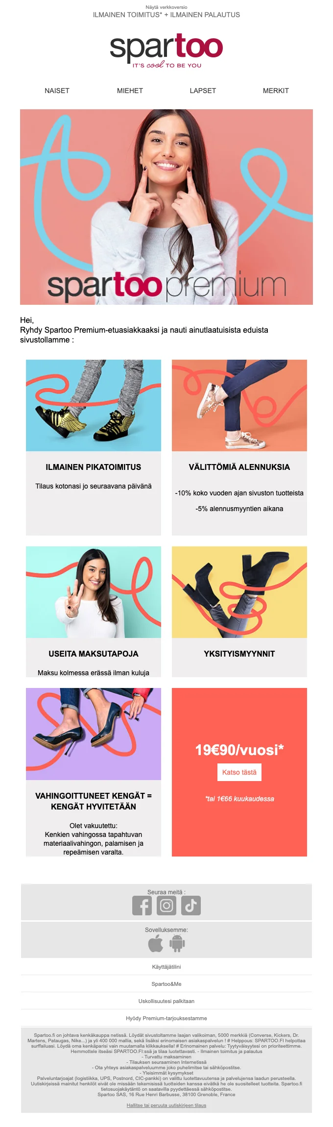 Spartoo ilmainen toimitus ja 10% alennus premium-asiakkaille