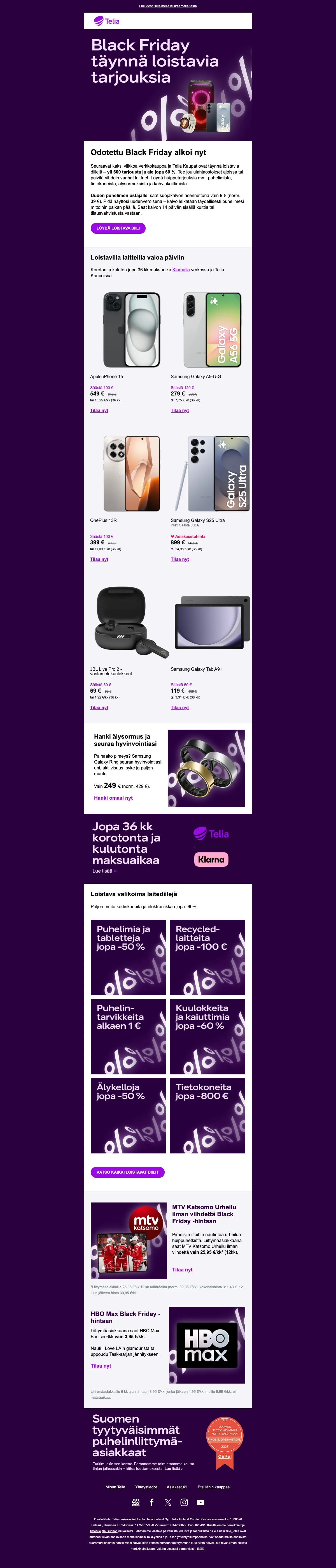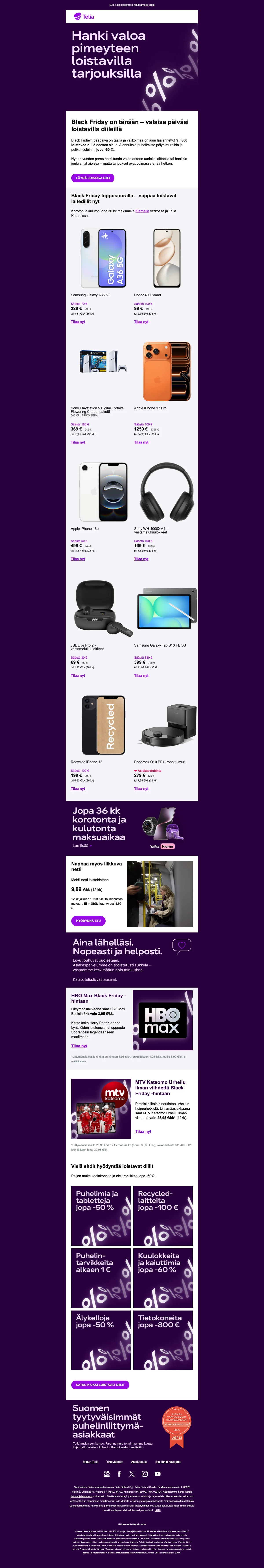 Telia Black Friday 60 % alennus laitteista