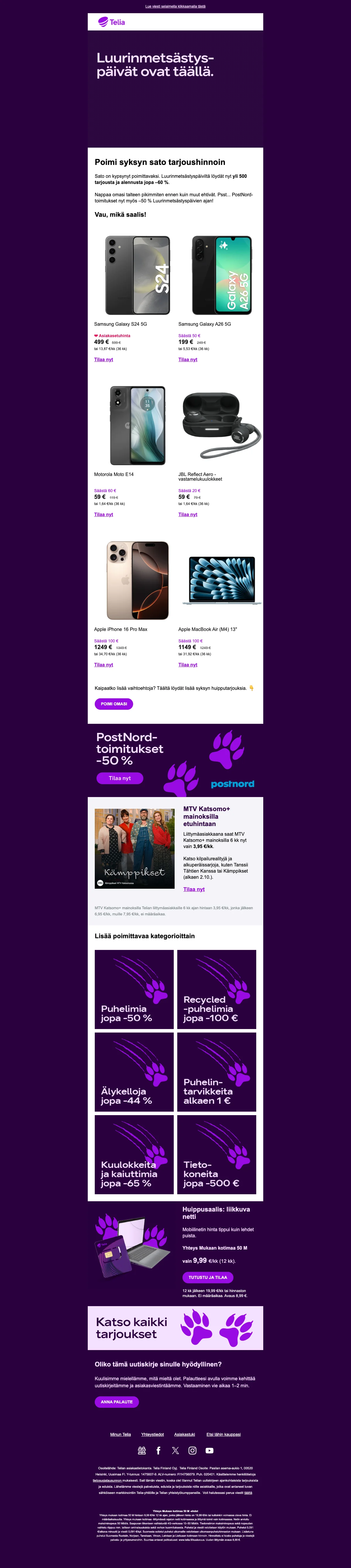 Telia alennuskoodi Suomi - helmikuu 2026