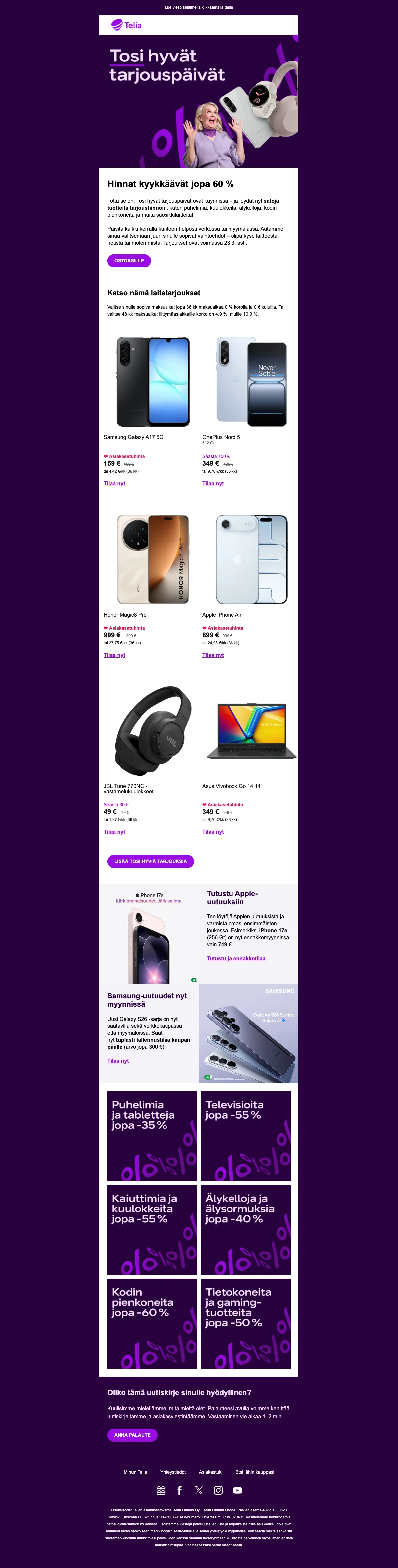 Telia laitetarjoukset jopa 60% alennus puhelimista ja laitteista